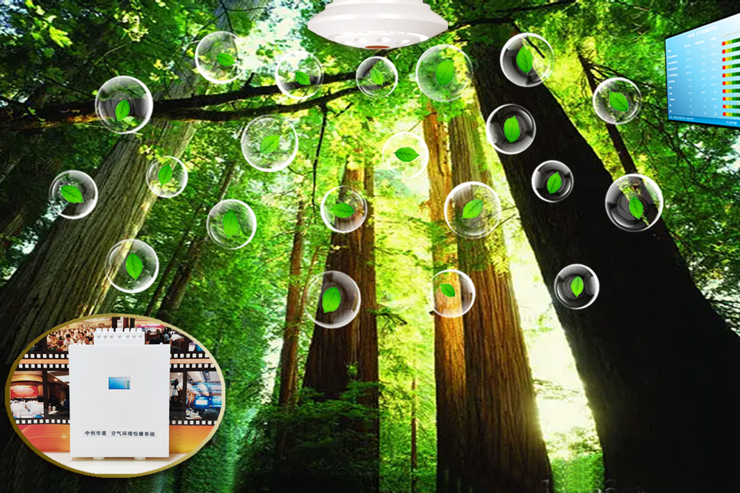 数字化:提供注入室内的怡康气体中细菌病毒、 PM2.5、甲醛等有害物质处理纯净度情况,及氧含量、CO2浓度、温度、湿度、负氧离子健康指数等的屏显。