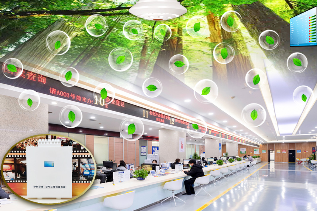 空气环境现代化办公楼,就是安装有空气环境怡康系统,替换原有空调、新风系统、净化器等,空气环境防护健康的办公楼,每个办公室,都会注入洁净安全健康的气体,创造洁净新鲜、氧含量高、负氧离子丰富的办公环境。办公楼内的每个办公室内空气环境怡康设备智能化运行,保障工作人员能在近似森林般的优质空气环境中工作,既有利于身体健康、疫情防控,又有利于工作效率的提高。哈佛大学研究发现:办公室空气质量不佳,会严重影响工作人员的认知功能和精神状态,从而显著降低工作效率。
